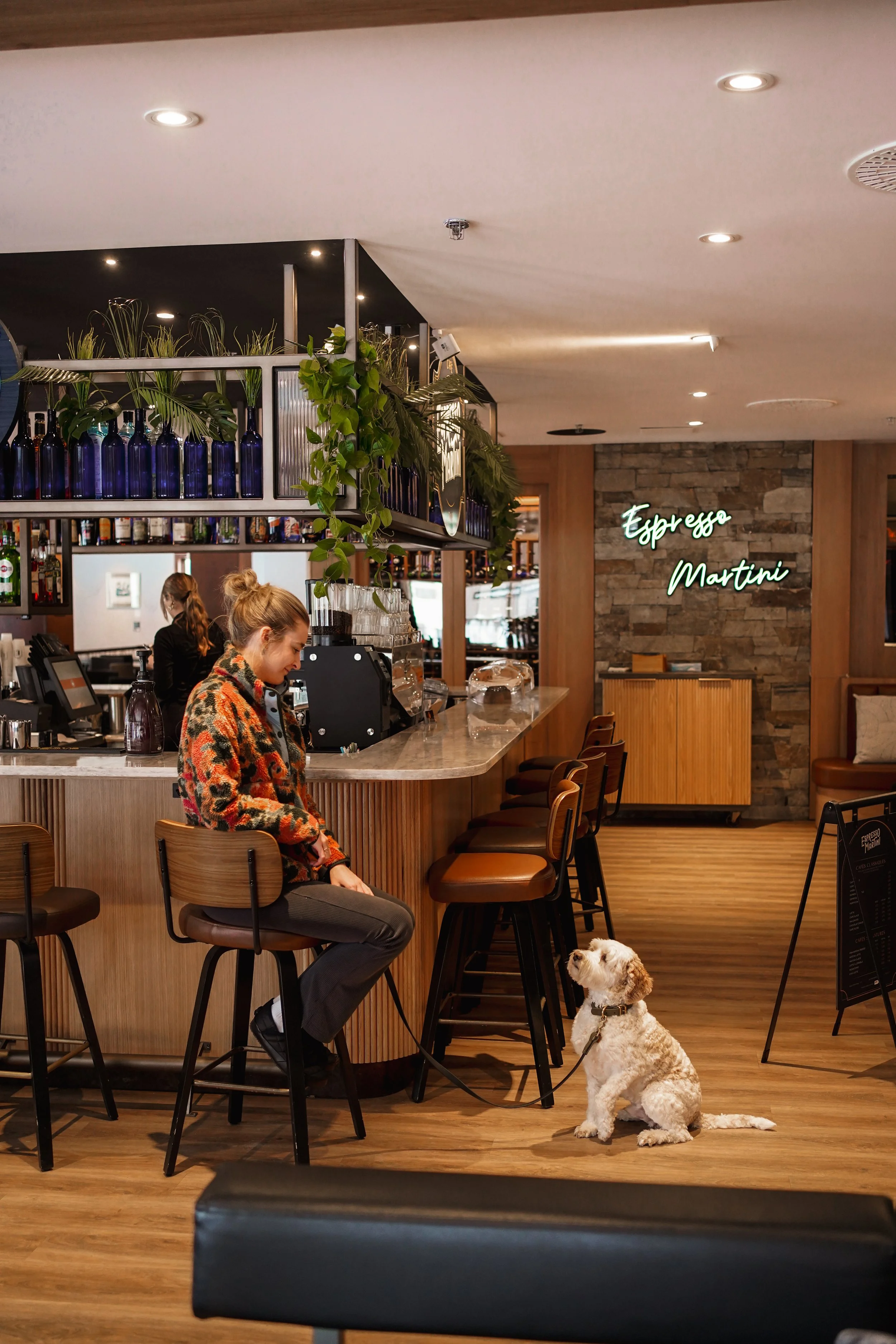Nous avons été charmées par le nouveau bar Expresso Martini, rapidement devenu notre endroit de prédilection pour nos repas. Que ce soit pour le petit-déjeuner ou le souper, nous avons pu déguster de délicieux plats toujours en compagnie de nos chiens. Charlot et Tommy ont même eu droit à un puppuccino pendant que nous savourions nos cocktails – une offre bien pensée sur le menu qui rend l’expérience encore plus spéciale!