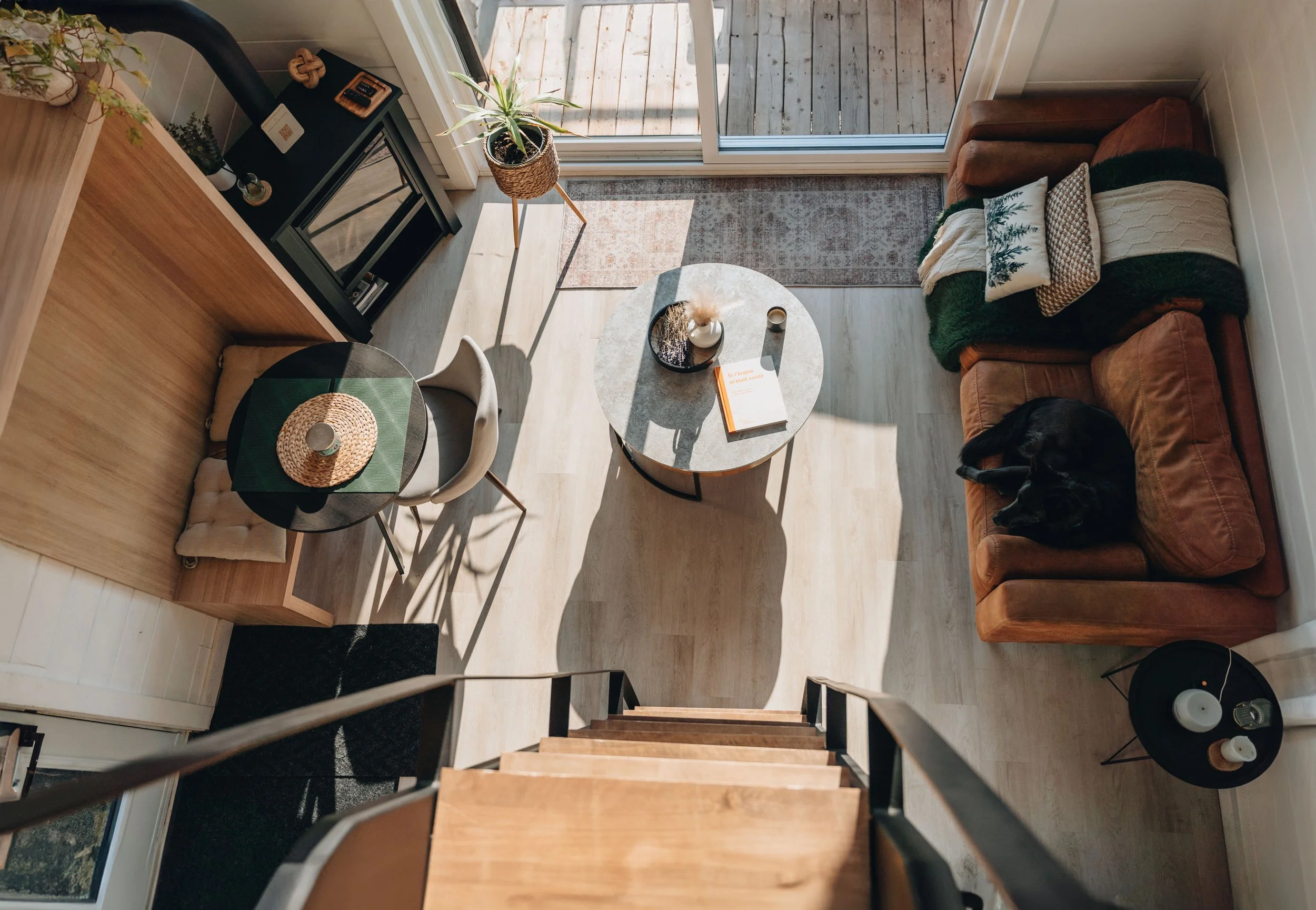 Dès qu’on franchit la porte, une douce chaleur enveloppante nous accueille. Bien que plus petit que son grand frère pour quatre personnes, ce chalet a été pensé avec soin et efficacité. Tout y est parfaitement agencé pour qu’on s’y sente bien dès les premières minutes.