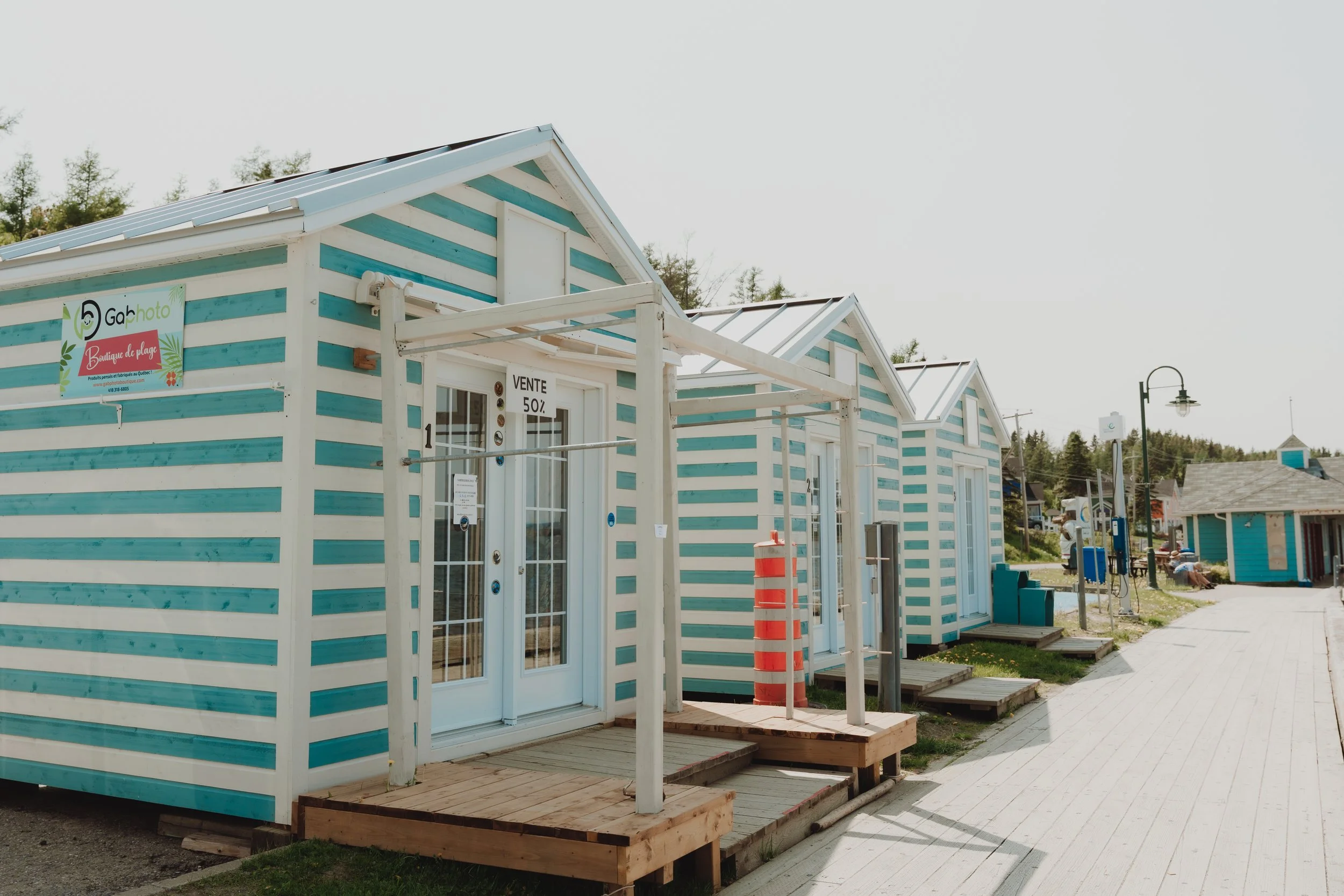 La promenade longe le bord de l’eau et est parfaite pour contempler le paysage. Il y a parfois des petites cabines ou kiosques artisanaux qui proposent des produits locaux comme des bracelets ou des serviettes faites au Québec. Lors de notre passage, c’était un peu trop tôt en saison, donc tout n’était pas encore ouvert, mais ça semblait charmant.